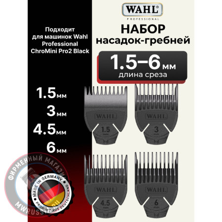 Набор оригинальных сменных пластиковых насадок Wahl Trimmer Attachment Combs 1501-7000 применяют для изменения длины стрижки. Насадки не деформируются, без усилий скользят через волосы, не оставляют «антенн» или толстых дорожек.