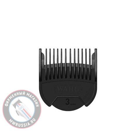 Насадка изменяет длину среза волос на 3 мм. Гребень совместим с сетевыми и беспроводными машинкам для стрижки Wahl. Насадка крепится на нож механизмом Snap-On, надежно держится, не соскакивая во время работы. Сделана из черного термостойкого пластика. Зубцы скруглены, чтобы не травмировать чувствительную кожу и легче проходить через волосы.