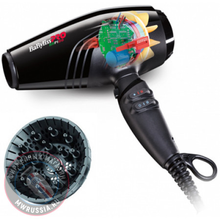 Фен BaByliss PRO Rapid Ferrari BAB7000IE - суперновинка от BaByliss, разработанная в тесном сотрудничестве с компанией Ferrari, производителем суперкаров. По состоянию на декабрь 2015 г, этот фен является мировым лидером в сочетании скорость потока/вес/уровень шума/срок службы. Фен оснащён новым мотором с электронным управлением, благодаря новой бесщёточной конструкции, уменьшающей его вес, снижающий вибрацию, уровень шума и увеличивающей срок службы (до 5000 часов работы). Технология изолированных шарикоподшипников снижает трение и вибрацию, обеспечивая плавное управление прибором. С феном BAB7000IE время сушки сокращается на 20% по сравнению с большинством фенов ассортимента Babyliss Pro. Встроенная турбокнопка обеспечивает максимальную мощность в процессе сушки. Фен оснащен специальным глушителем, чтобы снизить уровень шума в салоне красоты или у вас дома. Фен разработан для комфортной работы парикмахеров, а его эргономичный дизайн и комфортный фес позволяют избежать напряжённости в мышцах.