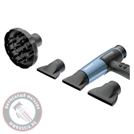 В комплекте эксклюзивные аксессуары от VALERA: шнур с поворотным механизмом ROTOCORD новой модификации (интегрированный в рукоятку); три профессиональные сверхузкие насадки-концентратора, включая не нагревающуюся насадку TOUCH ME, диффузор для сушки.
