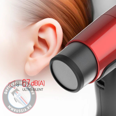 Вес фена составляет всего 295 г, что в 1,5 раза легче обычного фена. Уровень шума всего 67 дБ (А). Профессиональный трехметровый шнур не ограничивает свободы движения.