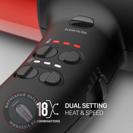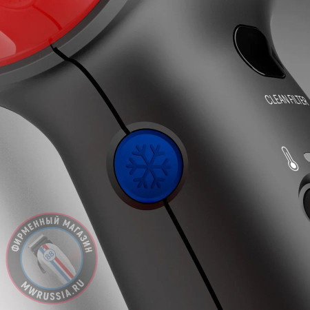 Auto-Clean – функция самоочистки прибора, активируется нажатием одной кнопки, предотвращает загрязнение воздушного фильтра, оберегая мотор от перегрева. Световой сигнал индикатора сообщит о необходимости очистки фильтра. Своевременная очистка фильтра значительно продлевает срок службы фена. Съемный металлический фильтр облегчает уход за прибором.
