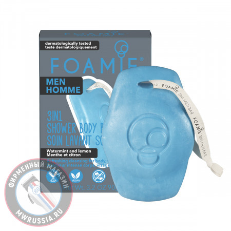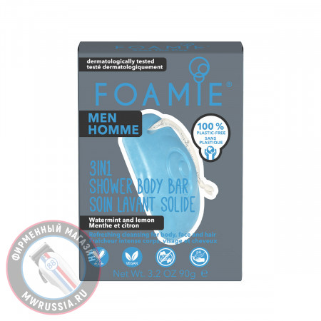 Очищающее средство для мужчин Foamie Men Ocean 3-в-1 для лица, тела и волос с мятой, лимоном и маслами кокоса и какао бережно очищает, интенсивно смягчает и увлажняет кожу и волосы, а охлаждающий эффект мяты дарит приятное ощущение прохлады, освежает и тонизирует.