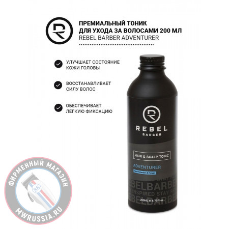 Премиальный тоник для ухода за волосами REBEL BARBER Adventurer 200 мл RB320 - великолепное средство, которое могут использовать как салоны, так и современные мужчины. Тоник для волос и кожи головы помогает улучшить состояние кожи головы, а также укрепляет и защищает волосы. Благодаря уникальной смеси тщательно подобранных ингредиентов он восстанавливает силу волос, обеспечивая легкую фиксацию и естественный вид. Аромат «Adventurer» с головокружительными и энергичными верхними нотами бергамота и лайма с интригующими нотами сердца пачули, слышимыми на фоне базовых нот мускуса и амбры. Подходит для всех типов волос.