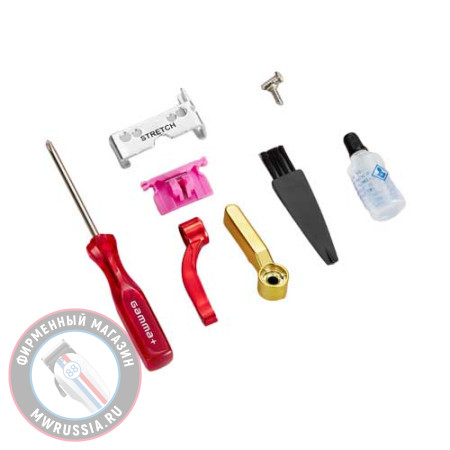 Внешний вид машинки можно изменить: в комплекте поставки дополнительно 2 сменных панели (цвета красный и золотой). + 2 планки: планка Stretch с 2 отверстиями и планка Deep с 4 отверстиями для использования вашего основного лезвия на машинках для стрижки других марок.