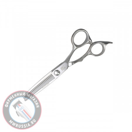 Ножницы филировочные HAIROLE 6.0 27 зубцов TC11-T - профессиональные парикмахерские ножницы эргономичной формы. Ножницы выполнены из высокоуглеродистой стали VG-10. Легированная кобальтом сталь VG-10 более твёрдая и вязкая, поэтому режущая кромка очень долго сохраняет остроту, не являясь при этом хрупкой. Конвексная заточка под углом 35-40 градусов делает полотна невероятно острыми и точными. Для винтовой группы используется подшипниковая система Mini-click, позволяющая осуществить пошаговую регулировку натяжения полотен.