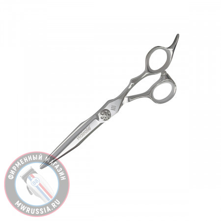 Ножницы прямые HAIROLE 6.1 TC12 - профессиональные парикмахерские ножницы эргономичной формы. Ножницы выполнены из высокоуглеродистой стали VG-10. Легированная кобальтом сталь VG-10 более твёрдая и вязкая, поэтому режущая кромка очень долго сохраняет остроту, не являясь при этом хрупкой. Конвексная заточка под углом 35-40 градусов делает полотна невероятно острыми и точными. Для винтовой группы используется подшипниковая система Mini-click, позволяющая осуществить пошаговую регулировку натяжения полотен.