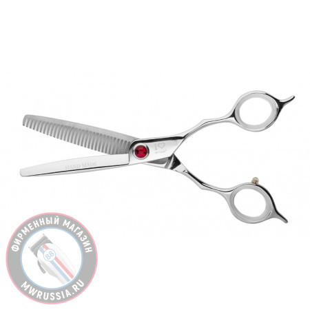 Ножницы филировочные ILMH 6.0 30 зубцов 2060-008 - профессиональные парикмахерские ножницы для стрижки волос. Особенностью данной модели является 2 рабочих положения: 1 вариант тупое полотно сверху (10% волос снимает) и 2 вариант тупое полотно снизу (30% волос снимает). Ножницы дополнены декоративным регулируемым винтом с красным камнем. Возможность делать скользящие срезы.