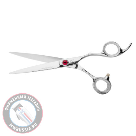 Ножницы прямые I Love My Hair 6.5 40965 - профессиональные парикмахерские ножницы для стрижки волос обеспечивают ровный срез, не сдвигая волосы. Данная облегченная модель выполнена с круглыми кольцами и литым упором для мизинца, имеет декоративный регулируемый винт с красным камнем.