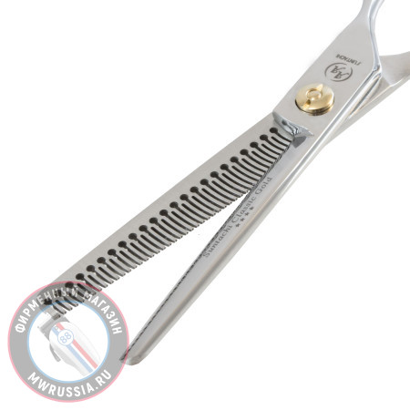 Виды срезов и техника: Особо острая кромка лезвия, в комбинации с 45 раздвоенными зубцами изогнутой формы и просечкой максимально подходит под классические техники тушевки и филировки. Раздвоенные зубцы, в основании которых имеется отверстие, способствуют более четкому и быстрому отделению срезанных волос. Этот эффект позволяет увеличить скорость тушевки или филировки. Особенно этот эффект позволяет комфортно работать на длинных волосах. Подходят для мужских и для женских стрижек.