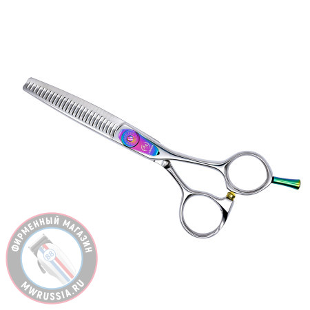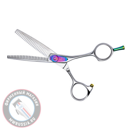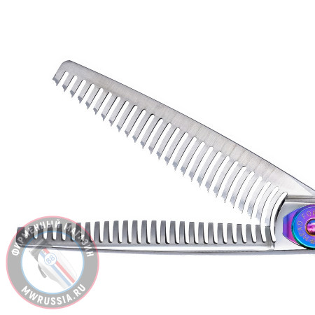 Виды срезов и техника: Два филировочных саблевидных полотна. Верхнее с 2 микрозубцами на каждом зубе; нижнее с гладкой заточкой, позволяют выполнять срез массы с фиксирующим эффектом волос на лезвии. Этот эффект позволяет более четко контролировать процесс стрижки и получение нужного результата, а так же при диагональном срезе не дает явного контраста срезанной зоны. Модель подходит для стрижек, облегчения концов, снятия объёма, работы с массой, создания формы, создания текстуры, сведения вместе простриженных зон, финишной доработки. Подходит как для мужских техник, так и для женских.