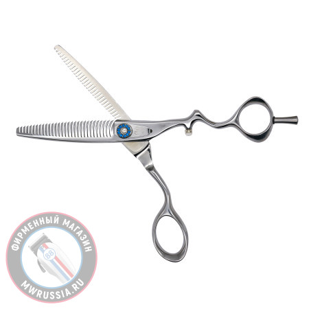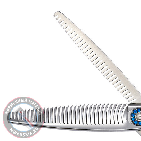 Виды срезов и техника: Два филировочных саблевидных полотна: нижнее полотно - 30 изогнутых зубцов с 2-мя микрозубцами на каждом зубе; верхнее полотно – 30 прямых зубцов с гладкой заточкой, позволяют выполнять срез массы с фиксирующим эффектом волос на лезвии. Этот эффект позволяет более четко контролировать процесс стрижки и получить нужный результат, а так же при диагональном срезе не дает явного контраста срезанной зоны. Модель подходит для стрижек, облегчения концов, снятия объёма, работы с массой, создания формы, создания текстуры, сведения вместе простриженных зон, финишной доработки. Подходит как для мужских техник, так и для женских.