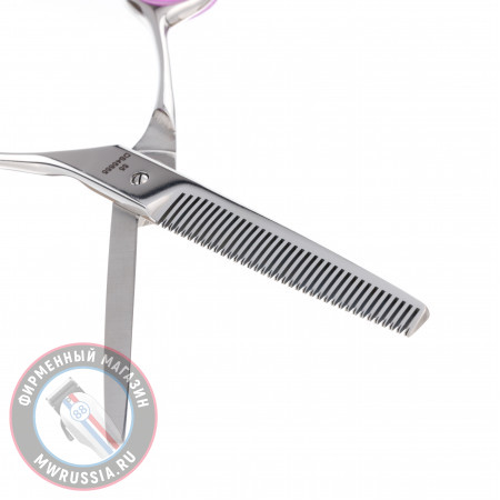 Специальная зеркальная полировка обеспечивает дополнительную антикоррозийную стойкость. Форма полотен - европейское полотно, конвекционная заточка. 36 зубцов, срез волос 25-30%, имеют форму в виде флажков, что позволяет добиться плавного перехода при филировке.