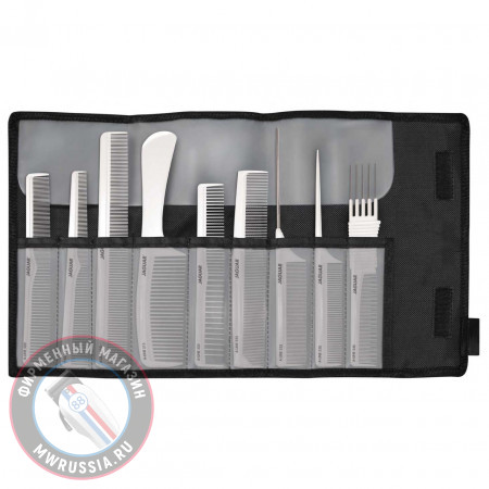 Набор профессиональных расчесок Jaguar A-Line Ionic 05599-01 - набор пластиковых расчесок белого цвета с ионами. Классический модельный ряд Jaguar Ionic Line, состоит из 9 расчесок (расческа-гребень, расческа для окрашивания, хвост пластмассовый, хвост металлический, комбинированная мужская, комбинированная конусная, комбинированная женская, расческа-вилка, расческа-зверевка). Расчески в эргономичном чехле легко хранить и удобно использовать во время работы.