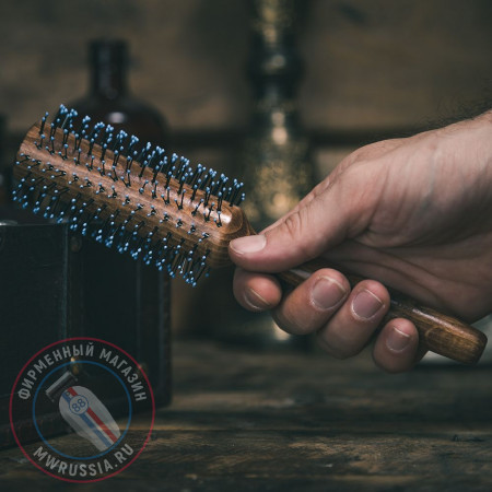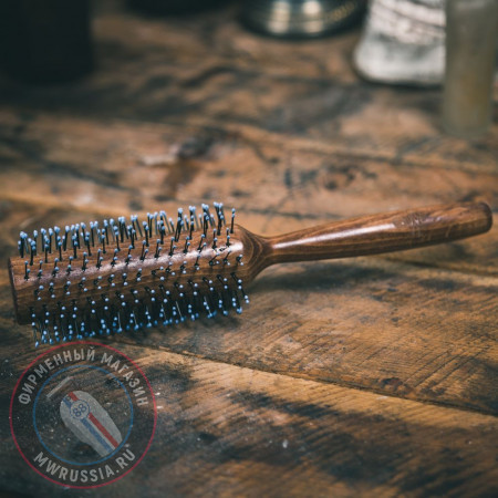 Расческа-роллер The Bluebeards Revenge Quiff Roller XL BBRQUIFFXL на деревянной ручке - незаменимая вещь для создания объема. Прежде всего, привлекает стильное оформление аксессуара. Натуральное дерево не только эффектно выглядит, но и требует особенного ухода: инструмент требует бережного очищения без замачивания, а также отсутствие искусственной сушки с помощью фена или батареи. Упругие зубчики с круглыми наконечниками позволяют распутать самые капризные пряди, не повреждая их структуру. Помимо этого, ими удобно делать профилактический массаж головы. Благодаря круглой форме расческа подходит для создания сложных мужских укладок.