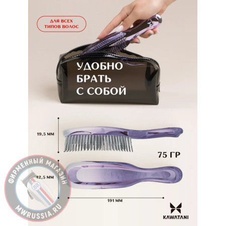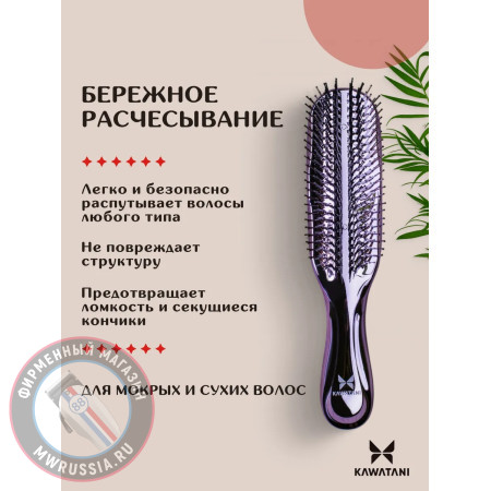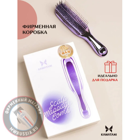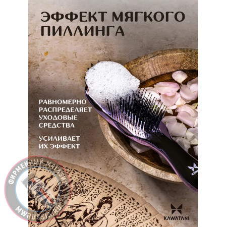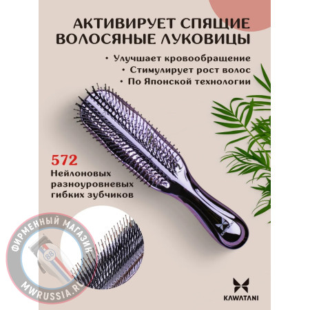 Инновационная массажная щётка Kawatani разработана специально для эффективного очищения и деликатного массажа кожи головы. Запатентованная форма расположения щетинок разной длины и жёсткости позволяет бережно и тщательно очищать поры на голове, увеличить приток крови к фолликулам, предотвращать выпадение волос, стимулировать их рост, активизировать спящие волосяные луковицы. Благодаря мягким нейлоновым зубчикам чешуйки кутикулы приглаживаются, волосы легко распутываются, становятся мягкими и шелковистыми, приобретают блеск и глянец. Улучшение кровоснабжение волосистой части кожи головы усиливает приток кислорода и питательных веществ, волосы становятся гуще и сильнее, улучшается их структура.