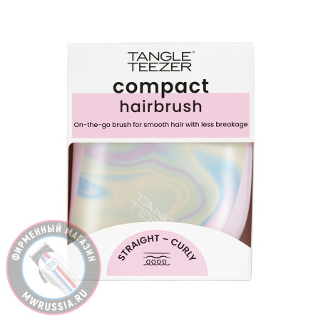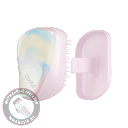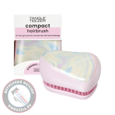 Tangle Teezer Compact Styler Ice Cream Swirl — компактная версия знаменитой расчески Tangle Teezer, которая поможет поправить прическу в любой ситуации! Представлена в нежно-розовом корпусе с голубыми и желтыми переливами, имитирующими текстуру мороженого. Гибкие двухуровневые зубчики бережно распутывают волосы, не повреждая их. Благодаря компактной форме расческа поместится даже в небольшую сумочку, а плотно прилегающая крышка защитит зубчики от пыли и повреждений. Результат применения — гладкие и блестящие волосы. Подходит для всех типов волос. Не используйте с феном.