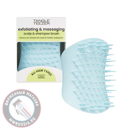 Tangle Teezer The Scalp Exfoliator and Massager Seafoam Blue – многофункциональная щетка для массажа головы. Представлена в нежно-голубом оттенке.
