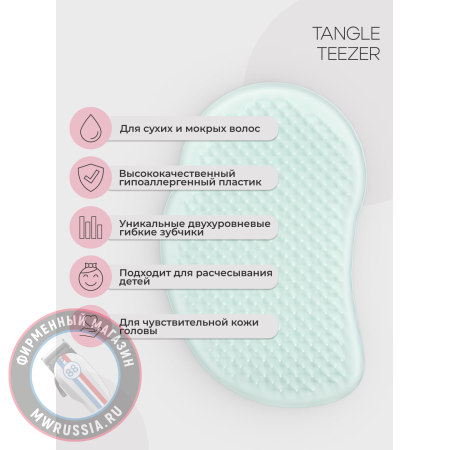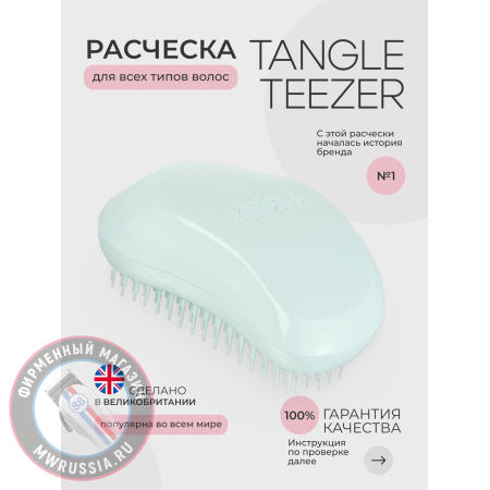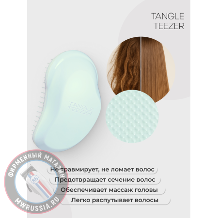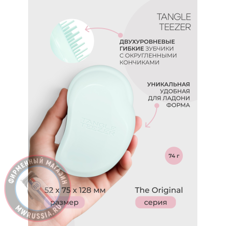 Tangle Teezer The Original Ice Blue – расческа для ежедневного ухода за прямыми и волнистыми волосами, представлена в холодном голубом оттенке. Гибкие зубчики бережно распутывают волосы, не царапая кожу и оказывая массажный эффект. Благодаря эргономичной форме и уникальным двухуровневым зубчикам расческа легко скользит по прядям, не травмирует их и предупреждает ломкость. Результат применения – гладкие и блестящие волосы. Модель The Original подходит для влажных и сухих волос. Не используйте с феном.