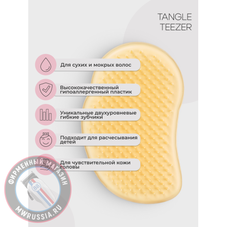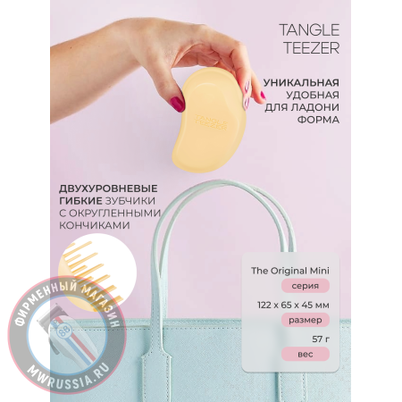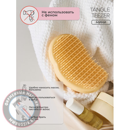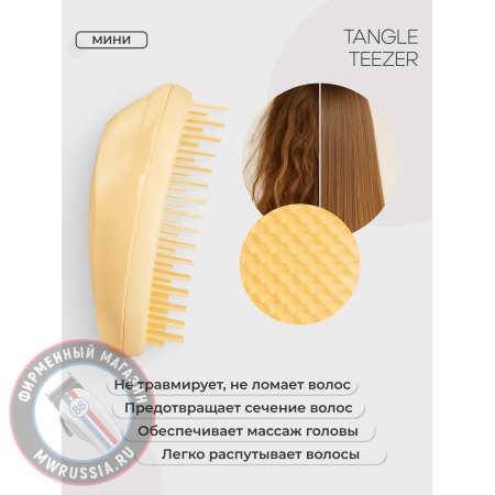 Tangle Teezer The Original Mini Buttercup Yellow в трендовом нежно-желтом оттенке – мини-формат классической расчески Tangle Teezer The Original. Подходит для прямых и волнистых волос. Гибкие двухуровневые зубчики бережно распутывают пряди, не повреждая их. Благодаря компактной форме расческа поместится в сумочку и поможет поправить прическу в любой ситуации. Подходит для влажных и сухих волос. Не используйте с феном.