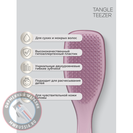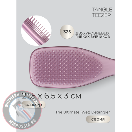 Новое имя: расческа The Wet Detangler теперь называется The Ultimate Detangler. В обновленной картонной упаковке – все та же расческа! Модель The Ultimate Detangler Chrome Mauve Copper предназначена для ежедневного ухода за прямыми и волнистыми волосами, представлена в хромированном корпусе медно-розового оттенка. The Ultimate Detangler рекомендована для распутывания влажных волос. Расческа легко скользит по волосам, не травмирует их и предупреждает ломкость. 325 двухуровневых гибких зубчиков позволяют легко и бережно распутывать влажные волосы. Благодаря эргономичной ручке расческой удобно распределять бальзамы и маски для волос. Не используйте с феном.