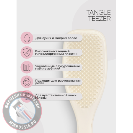 Встречайте лимитированную версию любимой расчески – Tangle Teezer The Ultimate Detangler Matte! Что отличает ее от классики? Матовый корпус soft-touch, выполненный в изящных природных оттенках. Расческа Tangle Teezer The Ultimate Matte Porcelain Cream предназначена для ежедневного ухода за прямыми и волнистыми волосами, представлена в трендовом сливочно-желтом оттенке. The Ultimate Detangler Matte рекомендована для распутывания влажных волос. Расческа легко скользит по волосам, не травмирует их и предупреждает ломкость. 325 двухуровневых гибких зубчиков позволяют легко и бережно распутывать влажные волосы.