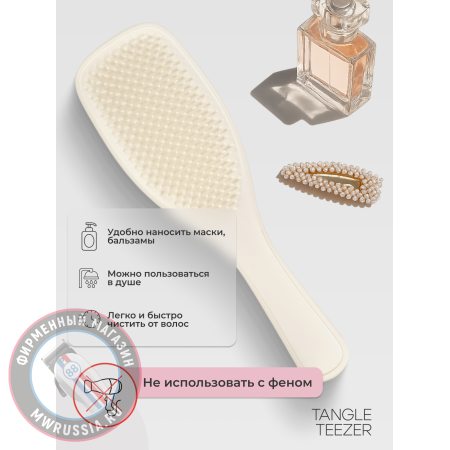 Благодаря эргономичной ручке расческой удобно распределять бальзамы и маски для волос. Не используйте с феном.