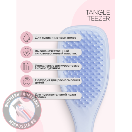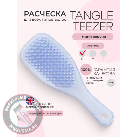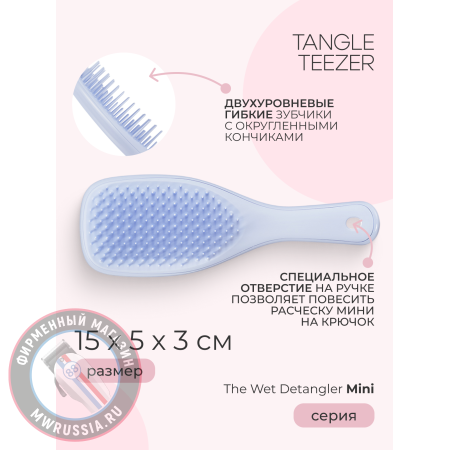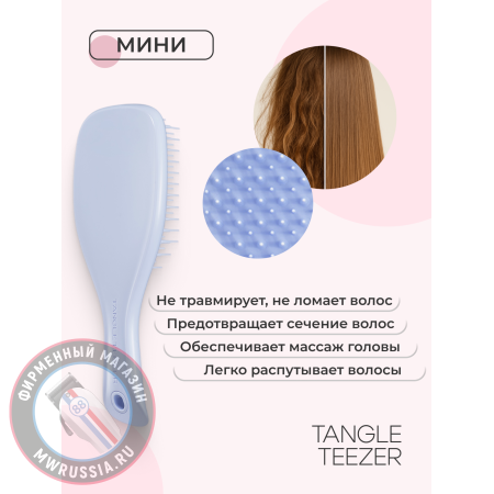 Новое имя: расческа The Wet Detangler Mini теперь называется The Ultimate Detangler Mini. В обновленной картонной упаковке – все та же расческа! Расческа Tangle Teezer The Ultimate Detangler Mini Digital Lavender в нежном лавандовом оттенке – мини-формат знаменитой модели The Ultimate Detangler. Запатентованные двухуровневые зубчики бережно распутывают влажные пряди, а также равномерно распределяют маски и бальзамы по волосам. Благодаря уменьшенному размеру расческу удобно брать с собой. Специальное отверстие на ручке позволяет прикрепить The Ultimate Detangler Mini к косметичке и иметь под рукой в любой ситуации. Результат применения – гладкие и блестящие волосы. Подходит для прямых и волнистых волос. Не используйте с феном.