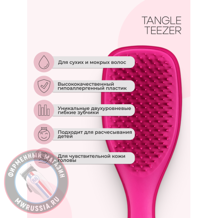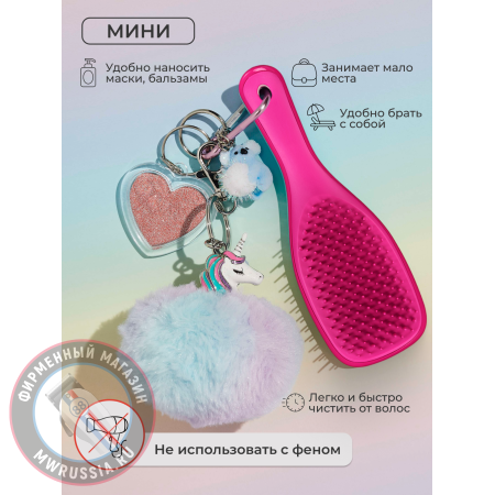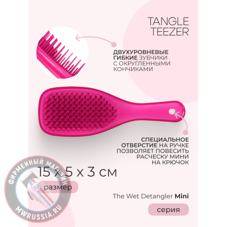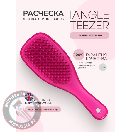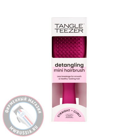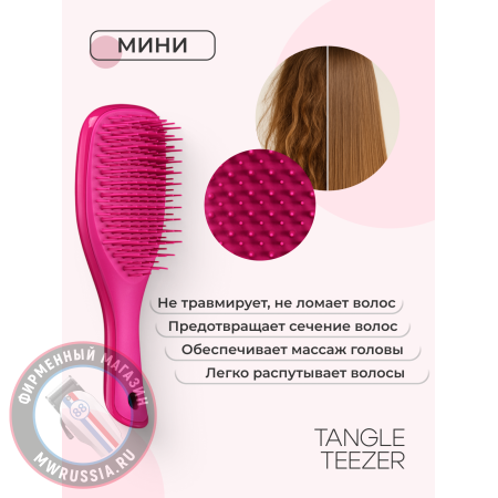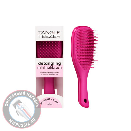 Расческа Tangle Teezer The Ultimate Detangler Mini Raspberry в дерзком малиновом оттенке – мини-формат знаменитой модели The Wet Detangler. Запатентованные двухуровневые зубчики бережно распутывают влажные пряди, а также равномерно распределяют маски и бальзамы по волосам. Благодаря уменьшенному размеру расческу удобно брать с собой. Специальное отверстие на ручке позволяет прикрепить The Ultimate Detangler Mini к косметичке и иметь под рукой в любой ситуации. Результат применения – гладкие и блестящие волосы. Подходит для прямых и волнистых волос. Не используйте с феном.