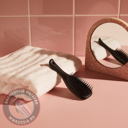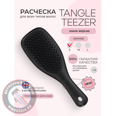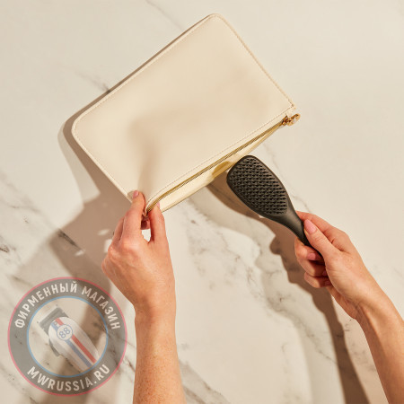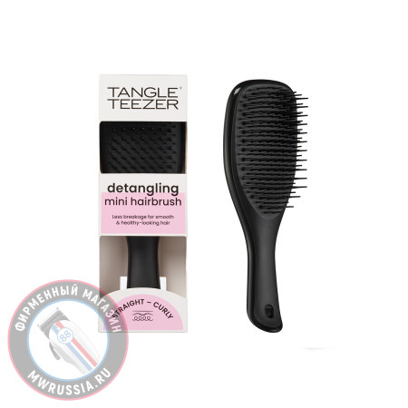 Расческа Tangle Teezer The Ultimate Detangler Mini Liquorice Black в стильном черном оттенке — мини-формат знаменитой модели The Ultimate Detangler. Запатентованные двухуровневые зубчики бережно распутывают влажные пряди, а также равномерно распределяют маски и бальзамы по волосам. Благодаря уменьшенному размеру расческу удобно брать с собой. Специальное отверстие на ручке позволяет прикрепить The Ultimate Detangler Mini к косметичке и иметь под рукой в любой ситуации. Результат применения — гладкие и блестящие волосы. Подходит для прямых и волнистых волос. Не используйте с феном.