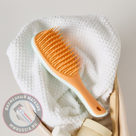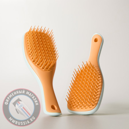 Новое имя: расческа The Wet Detangler Mini теперь называется The Ultimate Detangler Mini. В обновленной картонной упаковке – все та же расческа! Расческа Tangle Teezer The Ultimate Detangler Mini Digital Sweet Orange & Ice Blue представлена в контрастном сочетании оранжевого и голубого оттенков – мини-формат знаменитой модели The Ultimate Detangler. Запатентованные двухуровневые зубчики бережно распутывают влажные пряди, а также равномерно распределяют маски и бальзамы по волосам. Благодаря уменьшенному размеру расческу удобно брать с собой. Специальное отверстие на ручке позволяет прикрепить The Ultimate Detangler Mini к косметичке и иметь под рукой в любой ситуации. Результат применения – гладкие и блестящие волосы. Подходит для прямых и волнистых волос. Не используйте с феном.