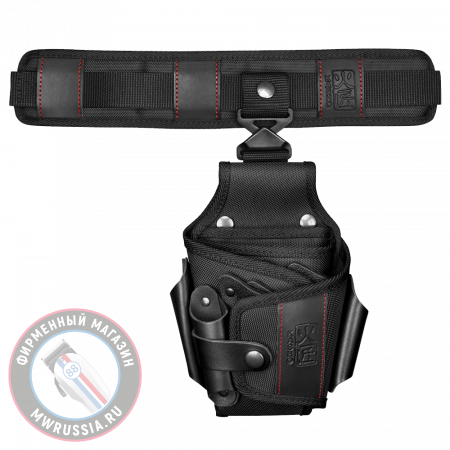 Фирменная кобура для ножниц Kasho черного цвета с ремнем и 8 отделениями.