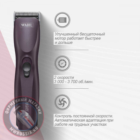 Wahl KM Supera Pet — это профессиональный инструмент, который сочетает в себе силу, легкость и элегантность. Созданная специально для тех, кто ценит профессионализм и качество, эта беспроводная машинка идеально подходит для бережной заботы о шерсти ваших питомцев. С мощным бесщеточным двигателем и надежным литий-ионным аккумулятором, Wahl KM Supera Pet открывает новые горизонты в уходе за животными.