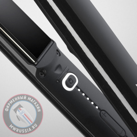 - Особенностью этого выпрямителя является керамический нагревательный элемент Advanced Ceramics, который позволяет нагреваться в два раза быстрее. Встроенный высокоточный микропроцессор с пятью уровнями регулировки температуры от 150 °C до 230 °C гарантирует поддержание идеальной точности температуры во время работы.