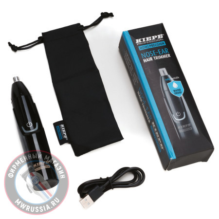 Комплектация: триммер для стрижки волос в носу и ушах, USB-кабель, дорожная сумка.
